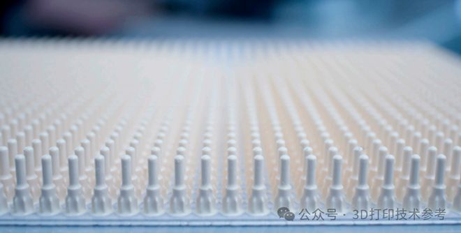 图5:3D打印套管在清洗、拆除和烧结之前置于打印平台上的状态。(图⽚来源:博世先进陶瓷)