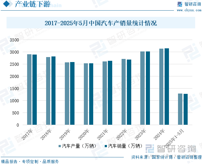 目前汽车行业是调心球轴承最大的下游应用领域。近年来,政府出台了一系列扶持政策,如汽车以旧换新促进政策等,地方层面也开展了灵活多样的促消费活动,对汽车消费的拉动作用非常强。与此同时,随着中国经济的快速发展,居民收入水平不断提高,对汽车的消费需求持续增长,国内市场的庞大需求为汽车产量的增长提供了广阔的空间。据统计,2025年1-5月,中国汽车产销量分别为1282.6万辆和1274.8万辆,同比分别增长12.7%和10.9%。未来,随着我国汽车产业向电动化、智能化方向转型,以及新能源汽车市场的快速扩张,汽车用调心球轴承的需求将保持稳定增长态势。