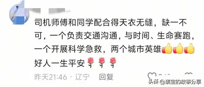 网友们纷纷评论道:“司机师傅和同学的配合天衣无缝,缺一不可,一个负责交通,与时间、生命赛跑,一个努力救人,两位城市英雄,”