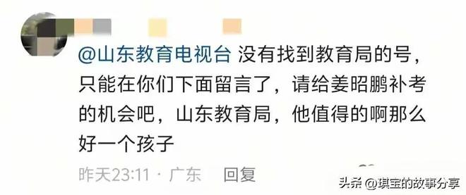 也有网友为他没有参加考试而感到惋惜:“希望可以给他一次补考的机会,他是一个好孩子”